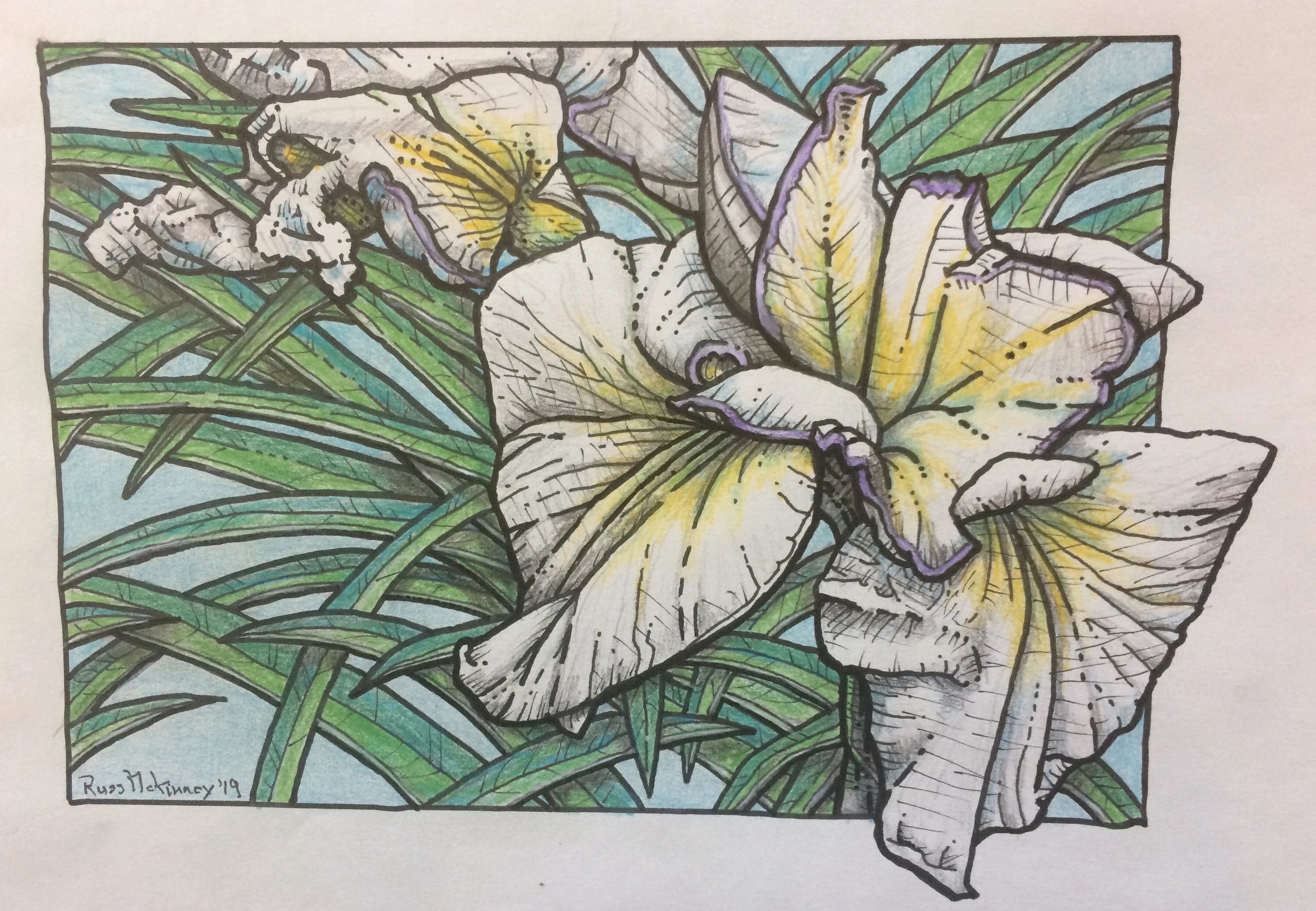 Artist Russ was born in Pittsburgh, Pennsylvania. He grew up mostly in Georgia, Texas, Oklahoma, and Virginia. A self-taught artist, writer, and musician, Russ started drawing when he was four, and he began doing low reliefs in copper when he was nine. He’s exhibited art in over 100 solo and group shows, and he’s published over 150 illustrations. He’s one of the 5,201 artists who submitted a design for the World Trade Center Memorial in New York. He most recently was a guest artist at The Artist’s Gallery in Ellicott City, Maryland.